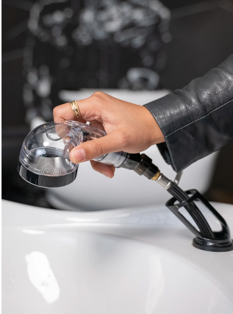 ECOHEADS salon showerheads are eco-friendly, professional grade showerheads designed specifically for the hair salon. These high quality showerheads are easy to install and will not only cut down your rinse time at the bowl, the special filtration system ionizes the water and removes sediment, leaving the hair cleaner and healthier.